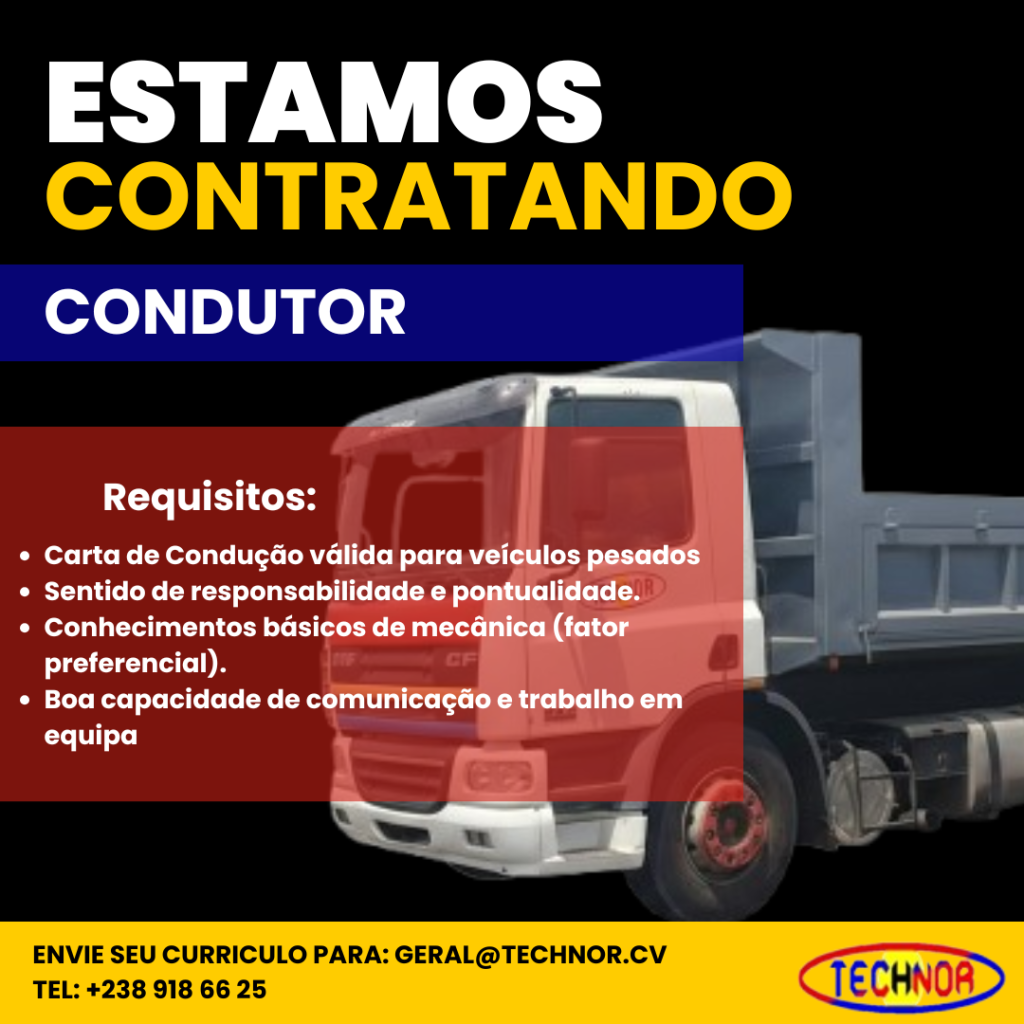 Se reúnes os requisitos, envia o teu Currículo atualizado para: 📧 geral@technor.cv